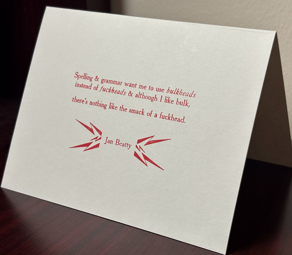 Letterpress Notecard: Lines from "The Drawbridge," by Jan Beatty